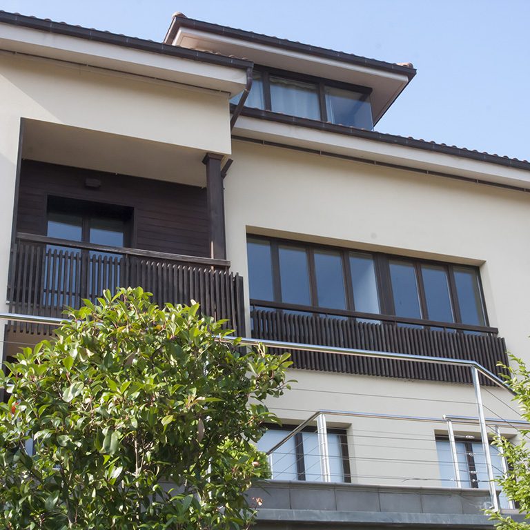- Carpintería exterior mixta de madera/aluminio con rotura de puente térmico y persianas de aluminio color carpinteria.